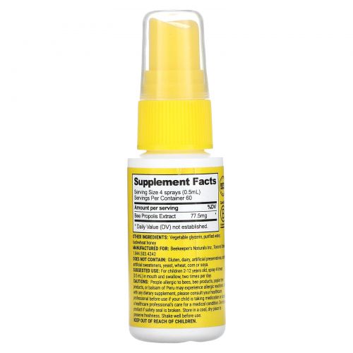 Описание товара Beekeeper's Naturals, спрей для горла с прополисом для детей, 30 мл (1,06 жидк. унции)