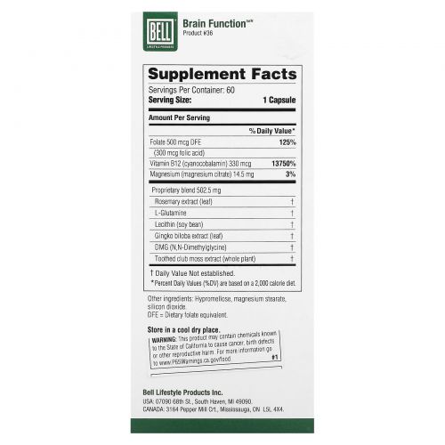 Описание товара Bell Lifestyle, Brain Function, 60 растительных капсул
