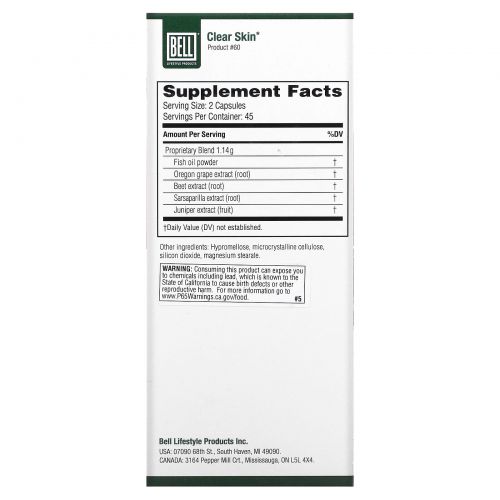 Bell Lifestyle, Чистая кожа, 90 капсул