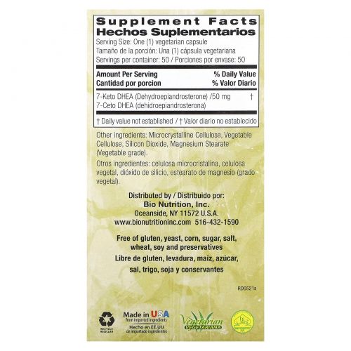 Описание товара Bio Nutrition, 7-цето ДГЭА, 50 мг, 50 вегетарианских капсул