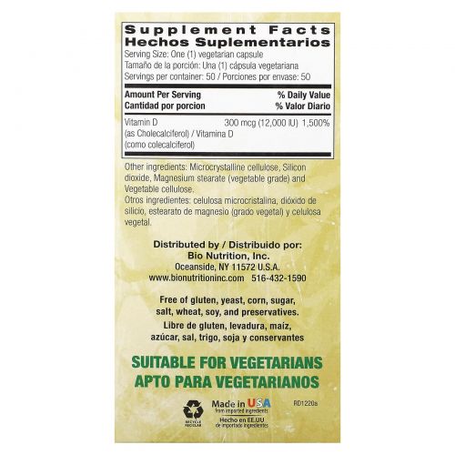Описание товара Bio Nutrition, D-3, 300 мкг, 50 вегетарианских капсул
