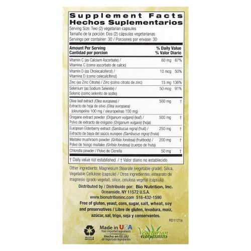 Описание товара Bio Nutrition, Immune Wellness, листья оливы и орегано, 60 вегетарианских капсул