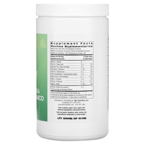 Описание товара Bio Nutrition, Органические листья моринги, порошок, 300 г