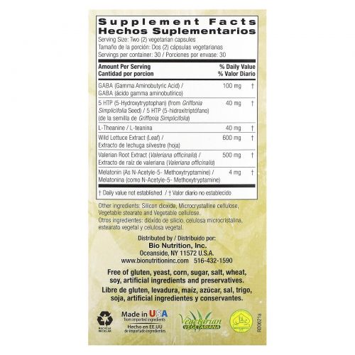 Bio Nutrition, Здоровье сна с экстрактом дикого салата, 60 вегетарианских капсул