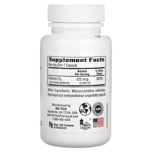 Описание товара Bio Tech Pharmacal, Inc, D3-5 холекальциферол, 250 вегетарианских капсул