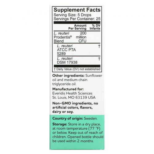Описание товара BioGaia, Prodentis Baby, пробиотические капли, для десен и зубов, 5 мл (0,17 жидк. Унции)