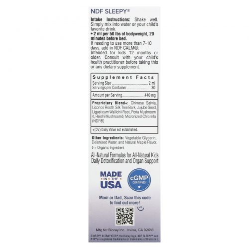 Описание товара BioRay Inc., NDF "Сон", расслабьтесь и спите крепко, для детей, кленовый вкус, 2 жид.унции(60 мл)