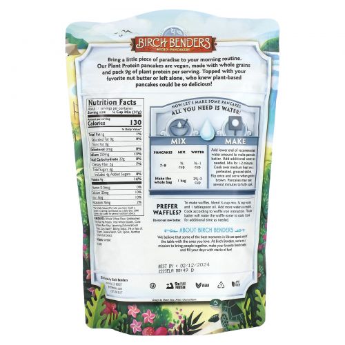 Описание товара Birch Benders, Смесь для блинов и вафель, растительный белок, 397 г (14 унций)