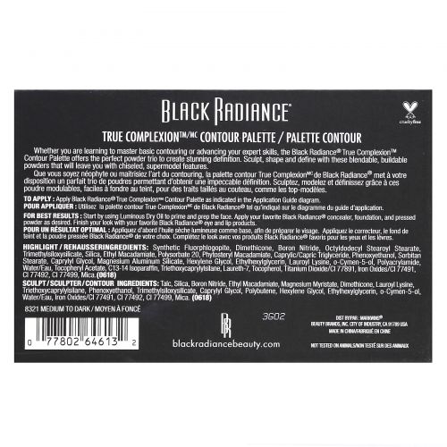 Описание товара Black Radiance, True Complexion, палитра контуров, оттенок 8321 от среднего до темного, 11 г (0,38 унции)
