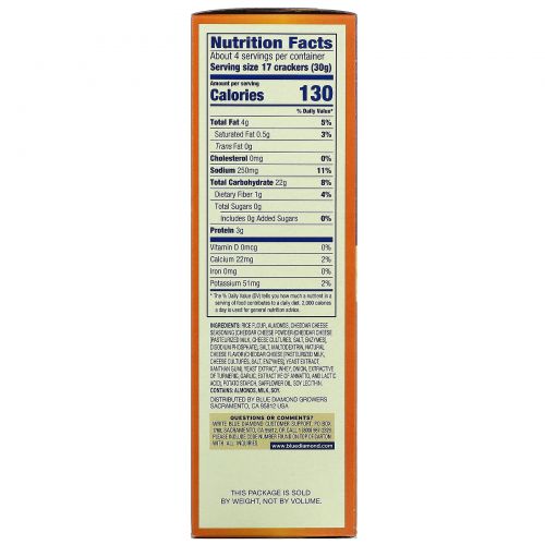 Описание товара Blue Diamond, Almond Nut-Thins, снэки из рисовых крекеров с миндалем, сыр чеддер, 120,5 г (4,25 унции)