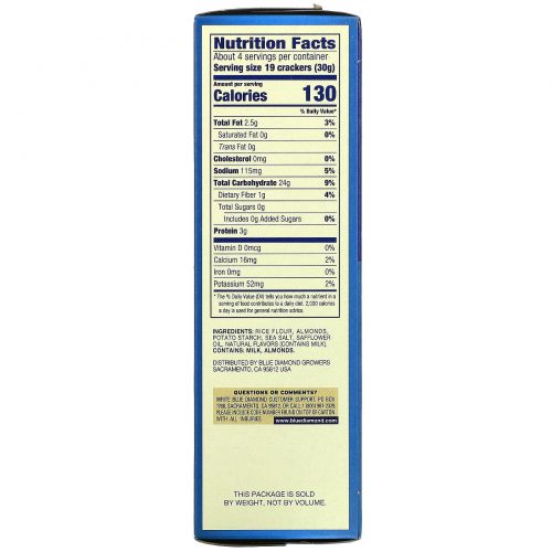 Описание товара Blue Diamond, Almond Nut-Thins, снэки из рисовых крекеров с миндалем, оригинальные, 120,5 г (4,25 унции)