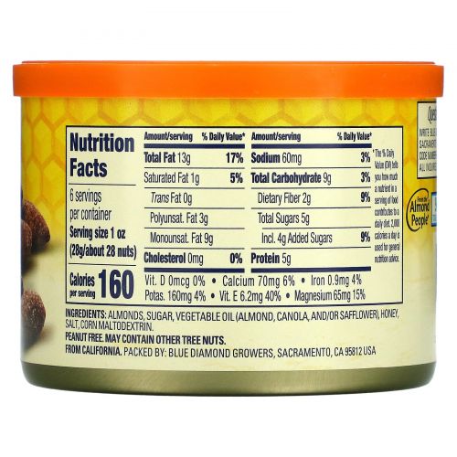 Описание товара Blue Diamond, Миндаль, обжаренный с медом, 170 г (6 унций)