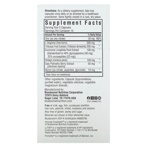 Описание товара Bluebonnet Nutrition, Intimate Essentials, для него, повышение тестостерона и либидо, 30 вегетарианских капсул