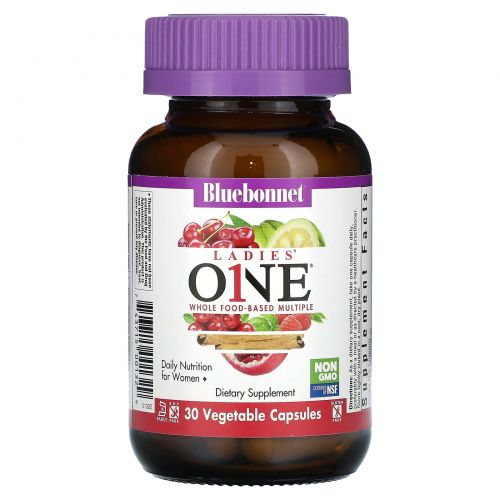 Описание товара Bluebonnet Nutrition, Ladies 'ONE, комплексные продукты на основе цельных продуктов, 30 растительных капсул