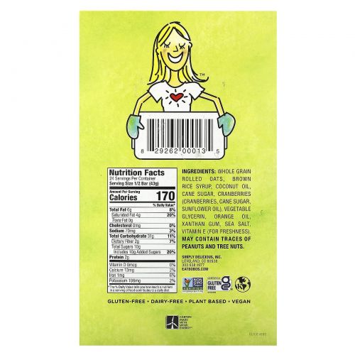 Описание товара Bobo's Oat Bars, Овсяные батончики с клюквой и апельсином, 12 батончиков по 85 г (3 унции)