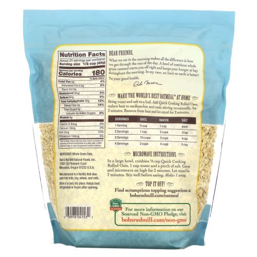 Описание товара Bob's Red Mill, Quick Cooking Rolled Oats, 32 oz ( 907 g)