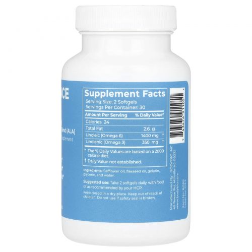 Описание товара BodyBio, Balance Oil, Linoleic Acid (LA) & Linolenic Acid Blend (ALA), 60 Non-GMO Softgels