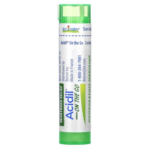 Описание товара Boiron, Acidil On The Go, для облегчения симптомов изжоги, 2 переносные тубы, 80 гранул в каждой