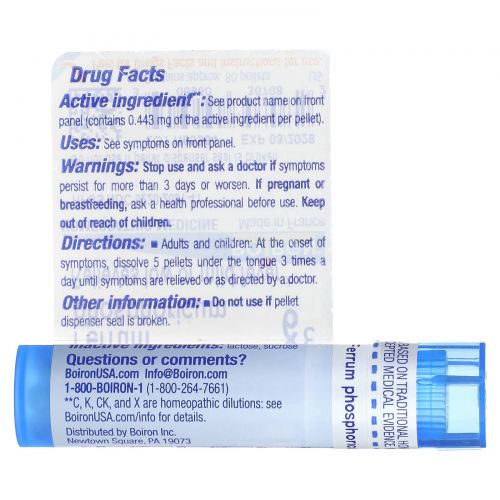 Описание товара Boiron, Single Remedies, Фосфат железа, 6C, 80 гранул