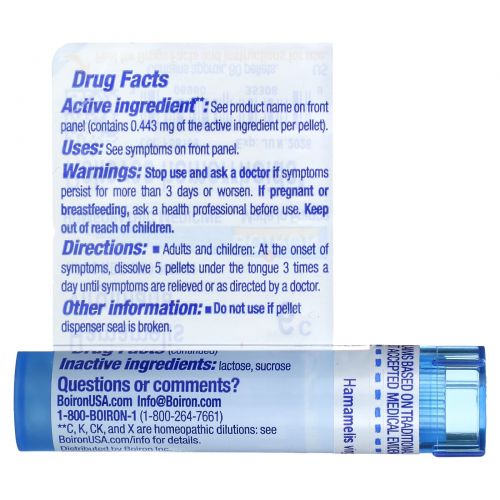 Описание товара Boiron, Single Remedies, Гамамелис виргинский, 6C, прибл. 80 гранул