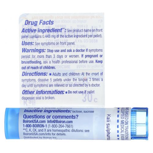 Описание товара Boiron, Single Remedies, Калий сернокислый (Kali Sulphuricum), 30C, приблизительно 80 гранул