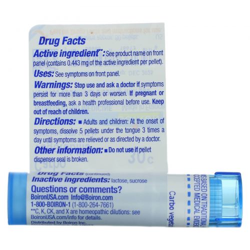 Описание товара Boiron, Single Remedies, Карбо вегетабилис, 30C, прибл. 80 гранул
