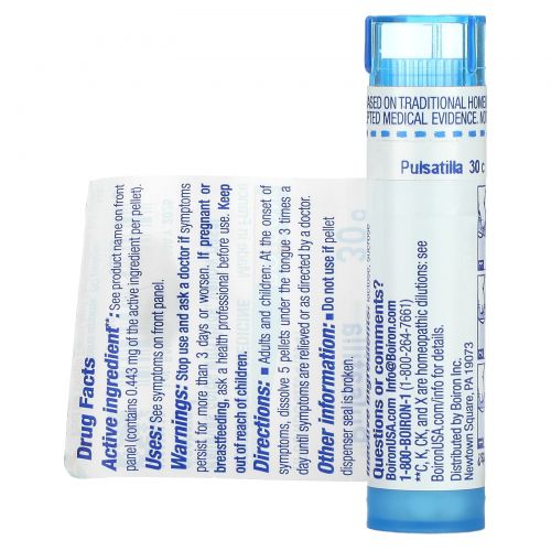 Описание товара Boiron, Single Remedies, Пульсатилла, 30C, прибл. 80 гранул