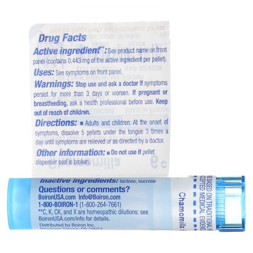 Описание товара Boiron, Single Remedies, Ромашка, 6C, прибл. 80 гранул