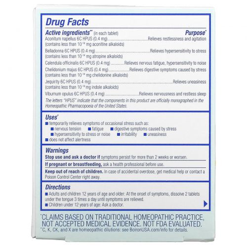Описание товара Boiron, Stress Calm Meltaway, таблетки для снятия стресса, без добавок, 60 таблеток Meltaway