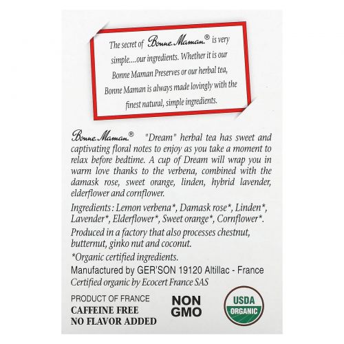 Описание товара Bonne Maman, Herbal Tea, Dream, без кофеина, 16 чайных пакетиков по 1,2 г (0,04 унции)