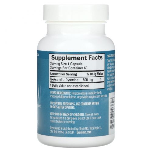 Описание товара BrainMD, NAC, 60 веганских капсул