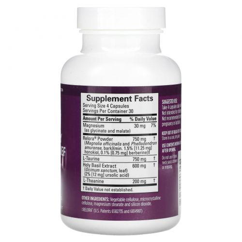 | Relora®, порошок (кора магнолии лекарственной (Magnolia officinalis) и амурского бархата (Phellodendron amurense), не менее 1,5% [11,25 мг] хонокиола, 0,1% [0,75 мг] берберина) | 750 мг | † |