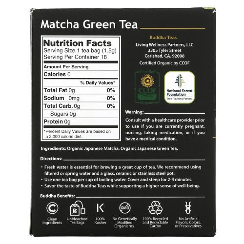 Описание товара Buddha Teas, Organic Herbal Tea, Matcha Green, 18 Tea Bags, 0.95 oz (27 g)