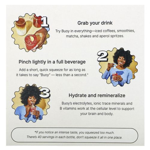 - Возьмите напиток - попробуйте Buoy во всем - в холодном кофе, смузи, матчах, коктейлях и апероле.