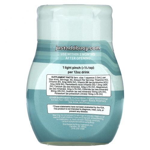 Описание товара Buoy Hydration, Увлажняющие капли, усилитель напитка, без добавок, 3 шт. В упаковке, по 60 мл (2 жидк. Унции)