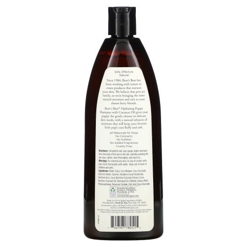 Увлажняющий шампунь для щенков с кокосовым маслом Burt's Bees® обеспечивает мягкое очищение, в котором нуждается его нежная кожа, благодаря естественному увлажнению, которое сохранит шерсть вашего любимого щенка пушистой и мягкой.