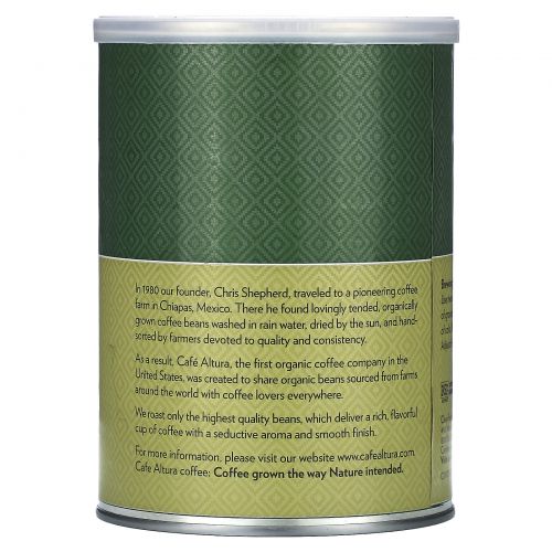 Описание товара Cafe Altura, Organic, Dark Roast, Ground, 12 oz (340 g)
