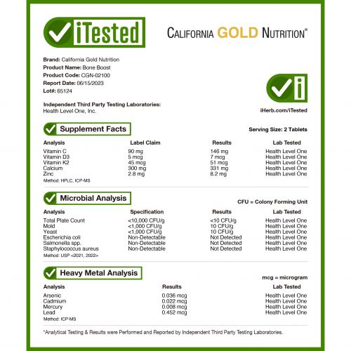 Описание товара California Gold Nutrition, Bone Boost, добавка для поддержки здоровья костей, 120 таблеток