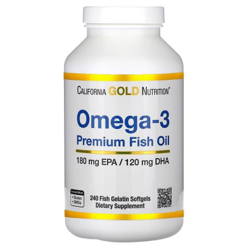 Описание товара California Gold Nutrition, Omega-3, Premium Fish Oil, 240 Fish Gelatin Softgels