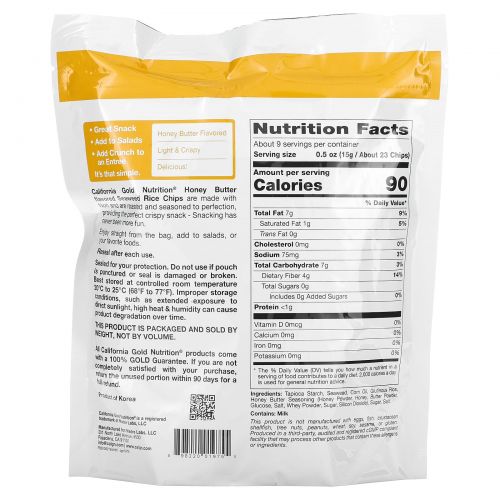 Описание товара California Gold Nutrition, рисовые чипсы с водорослями, со вкусом меда и сливочного масла, 142 г (5 унций)