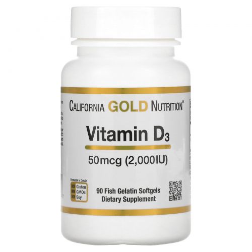 California Gold Nutrition, Витамин D3, 50 мкг (2000 МЕ), 90 желатиновых мягких таблеток