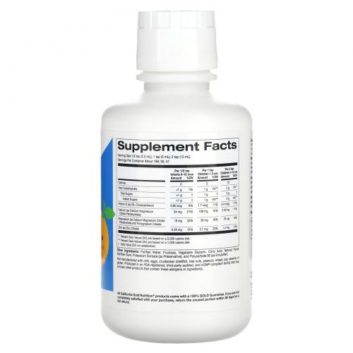 Описание товара California Gold Nutrition, жидкий кальций с магнием для детей, апельсин, 473 мл (16 жидк. унций)