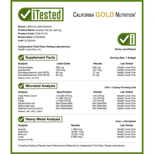 Масло антарктического криля от California Gold Nutrition содержит масло криля RIMFROST с натуральным (не обогащенным) астаксантином, полученным экологичным способом из вод первозданного Южного океана. Капсулы из рыбьего желатина производятся в штате Калифорния (США) и содержат натуральный ароматизатор «Клубника и лимон», который помогает скрыть неприятный рыбный привкус.