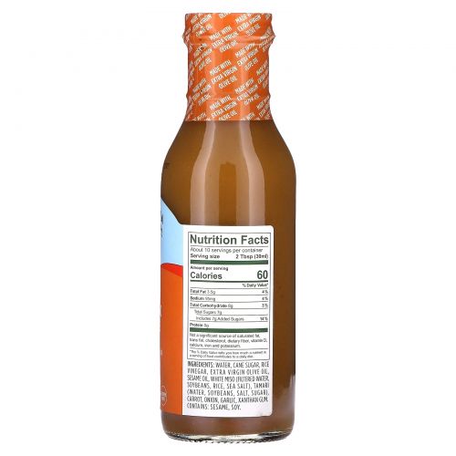 Ощутите комплексный и экзотический вкус Азии с нашей восхитительной заправкой из нерафинированного оливкового масла высшего качества. Это пикантное и сладкое блюдо из моркови, мисо, тамари, чеснока и лука изготовлено в Калифорнии. Просто встряхните и добавьте в свой любимый салат или овощи, чтобы усилить их свежий вкус!
