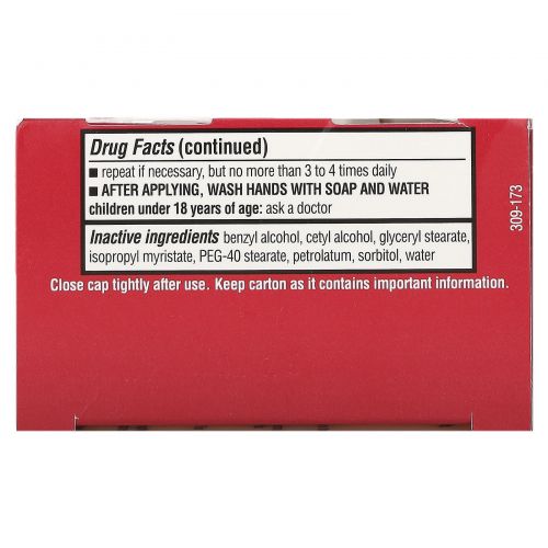 | Неактивные ингредиенты : бензиловый спирт, цетиловый спирт, глицерил стеарат, изопропил миристат, ПЭГ-40 стеарат, вазелин, сорбитол, вода. | |