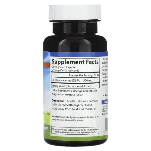 Описание товара Carlson, DLPA, DL-фенилаланин, 500 мг, 60 капсул