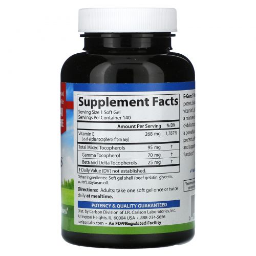 Описание товара Carlson, E-Gems Plus, 268 мг (400 МЕ), 140 мягких таблеток