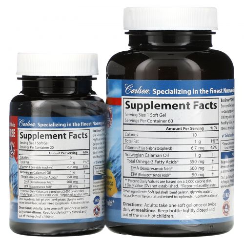 Описание товара Carlson Labs, Экосмарт ДГА, натуральный вкус лимона, 60 желатиновых капсул + 20 бесплатно