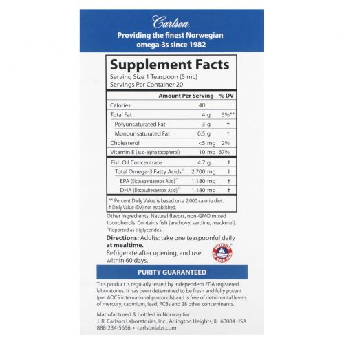 Этот продукт регулярно проверяется независимыми лабораториями, зарегистрированными FDA. Было установлено, что оно является новым и полностью эффективным (по международным протоколам AOCS) и не содержит вредных уровней ртути, кадмия, свинца, ПХБ и 28 других загрязнителей.