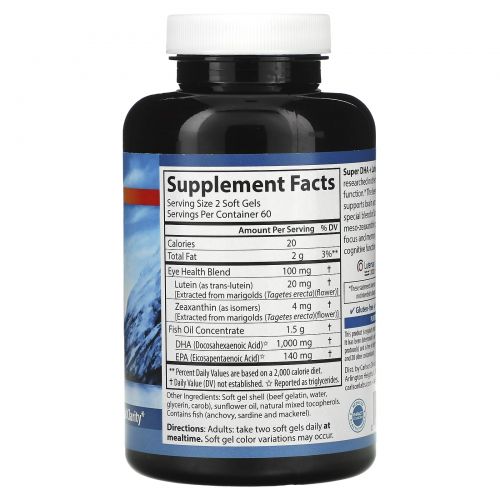 Описание товара Carlson Labs, Super DHA plus Lutein, 120 Soft Gels